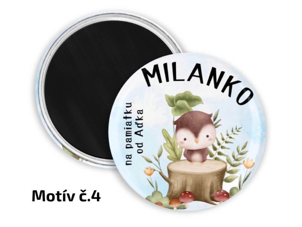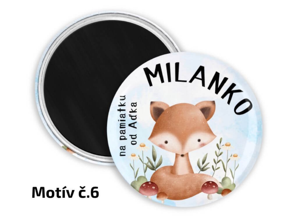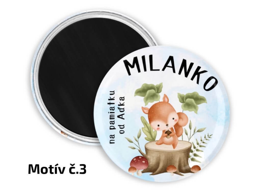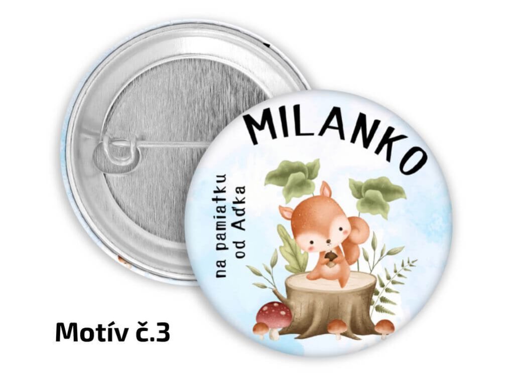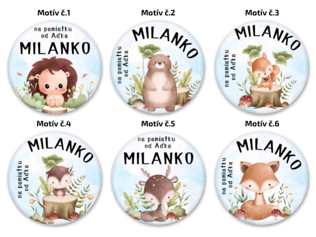 Detské odznaky alebo magnetky do škôlky s motívmi lesných zvieratiek sú naozaj skvelé ako maličkosť do škôlky na narodeniny a iné špeciálne príležitosti. Na každom odznaku je spoločný nápis "NA PAMIATKU OD ..." a následne meno malého kamaráta zo škôlky. V rámci personalizácie okrem samotných mien je možné zameniť aj spoločný text, stačí ho napísať do poznámky pri objednávke. Samozrejme nezabudnite do poznámky napísať aj menný zoznam detičiek.