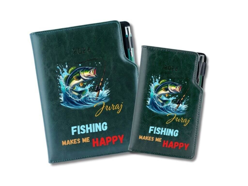 ✅ diár vhodný pre rybára, s možnosťou personalizácie mena a textu