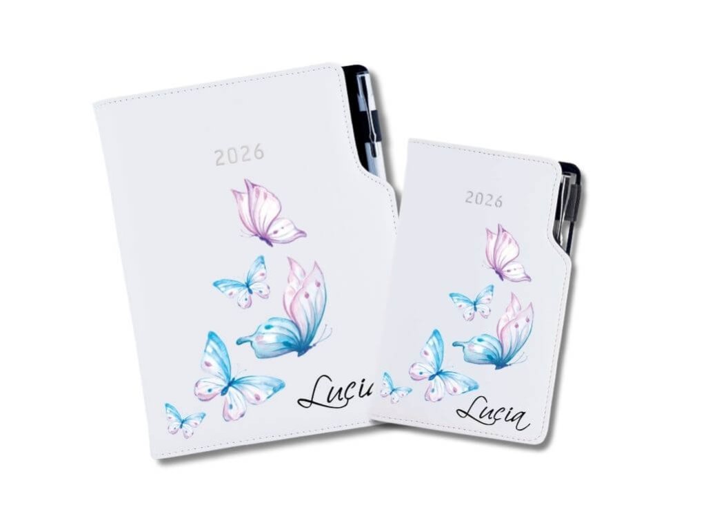Diár pre ženy s motýlmi je ideálny na každodenné plánovanie, zapisovanie povinností, cieľov a zážitkov. Vďaka personalizovanému obalu s menom alebo textom sa stáva originálnym doplnkom, ktorým môžete potešiť aj seba alebo môže byť krásnym darčekom pre kamarátku, kolegyňu či učiteľku. Je praktickým spoločníkom na každý deň, ktorý vám pomôže udržať prehľad a organizáciu v živote.