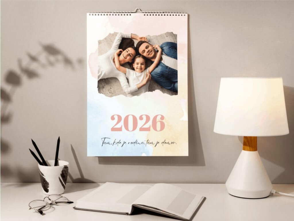 Fotokalendár obsahuje slovenské mená, takže máte vždy prehľad o meninách a dôležitých dňoch, ktoré si môžete za príplatok personalizovať. V prednej časti je možné pridať vlastné venovanie alebo text, napríklad „Naša rodina 2026“ alebo „Najkrajšie spomienky z detstva“.