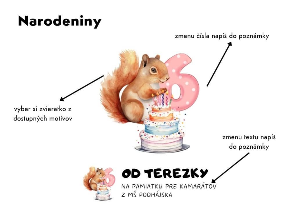 - Jedinečný motív: Grafika je vytváraná špeciálne pre náš eshop, pričom je možné individuálne upraviť akýkoľvek motív za príplatok, vrátane zmien farby textu a doplnenia mena.