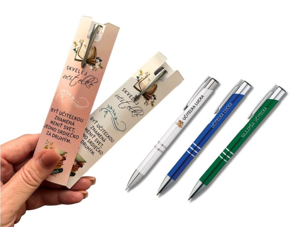 Pero pre učiteľku v papierovom puzdre je ideálnym darčekom, ktorý učiteľkám a učiteľom prinesie radosť a osobný dotyk. Guľôčkové pero je síce každodennou maličkosťou, ale hneď ako na neho pridáte meno obdarovanej osoby a zabalíte ho do pekného puzdra, jeho hodnota okamžite rastie. Personalizované pero je preto vhodným malým darčekom na Deň učiteľov, meniny, koniec či začiatok školského roka.