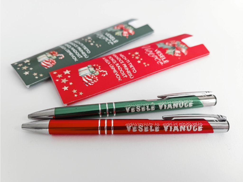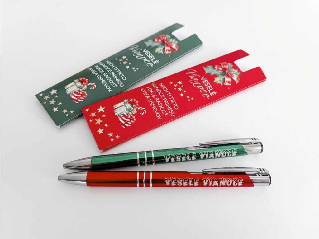 Kovové pero s menom vo vianočnom papierovom puzdre je ideálnym darčekom, ktorý kolegom či blízkym prinesie radosť a osobný dotyk. Guľôčkové pero je síce každodennou maličkosťou, ale hneď ako na neho pridáte meno obdarovanej osoby a zabalíte ho do pekného puzdra, jeho hodnota okamžite rastie. Personalizované pero je preto vhodným malým darčekom na Vianoce.