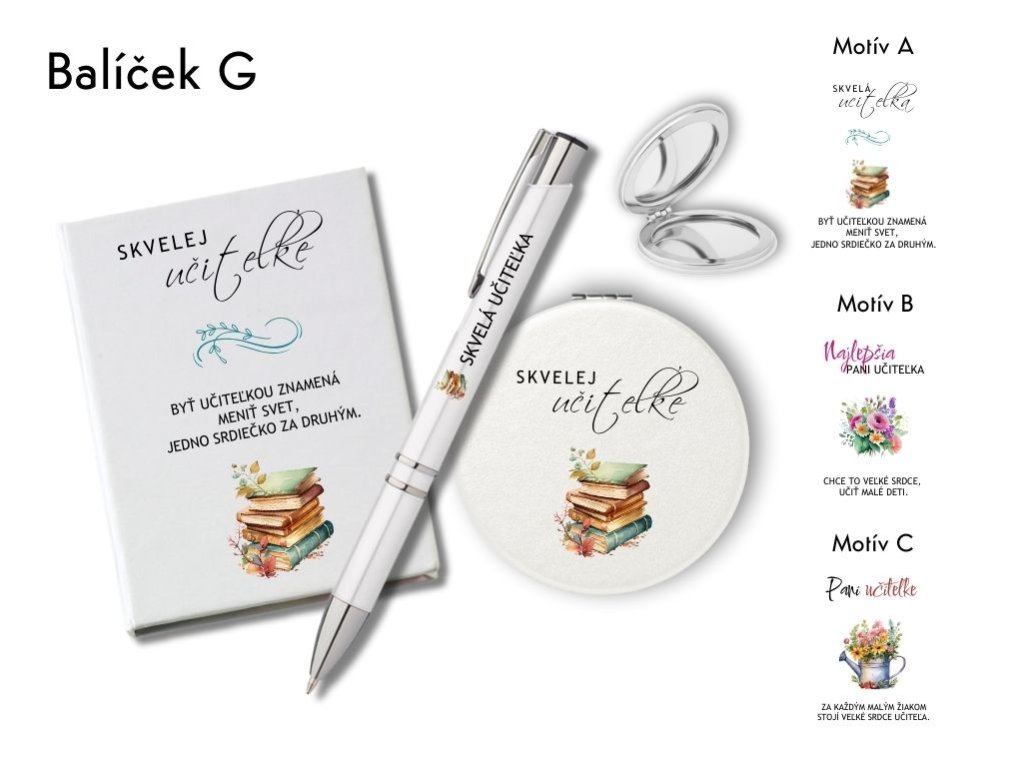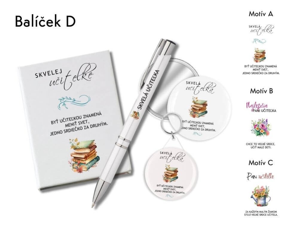 ✅ balíček D: sada papierikov, pero, minizrkadielko, kľúčenka, darčeková krabička s potlačou